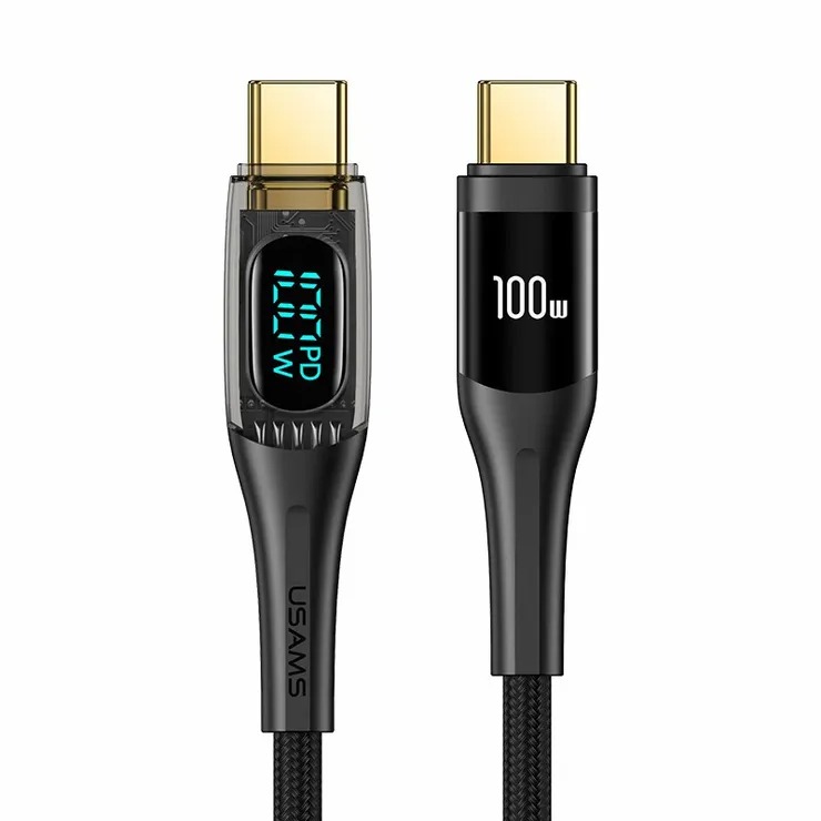 USAMS US-SJ591 Type-C To Type-C PD 100W Transparent Digital Display Cable (2 Meter)